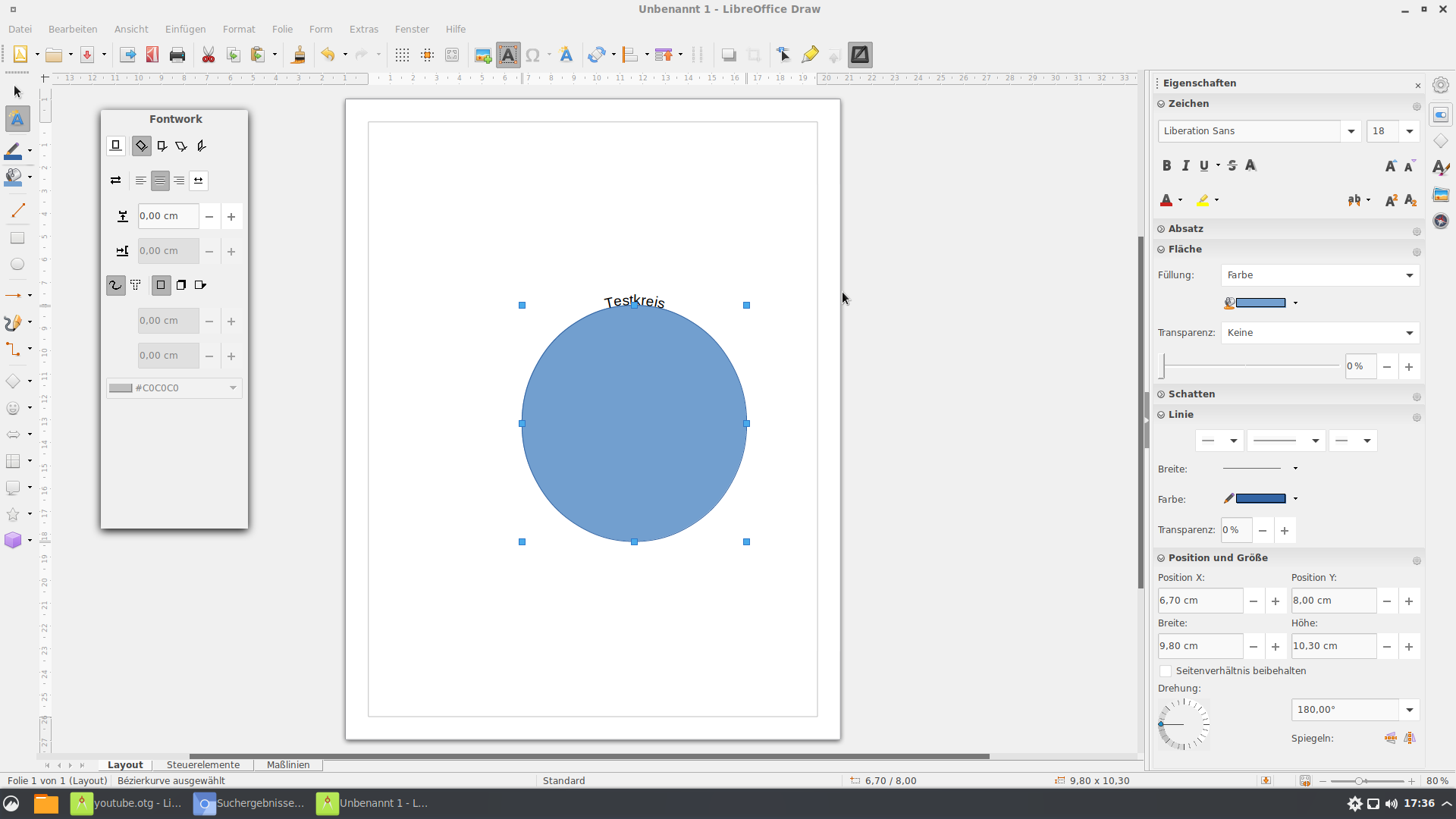 Um am Kreis-Text etwas zu ändern, mit der Mouse auf den Text gehen, Doppelklick und Frontwork öffnet sich. Den Kreis man wieder mit der gleichen Taste aktivieren.