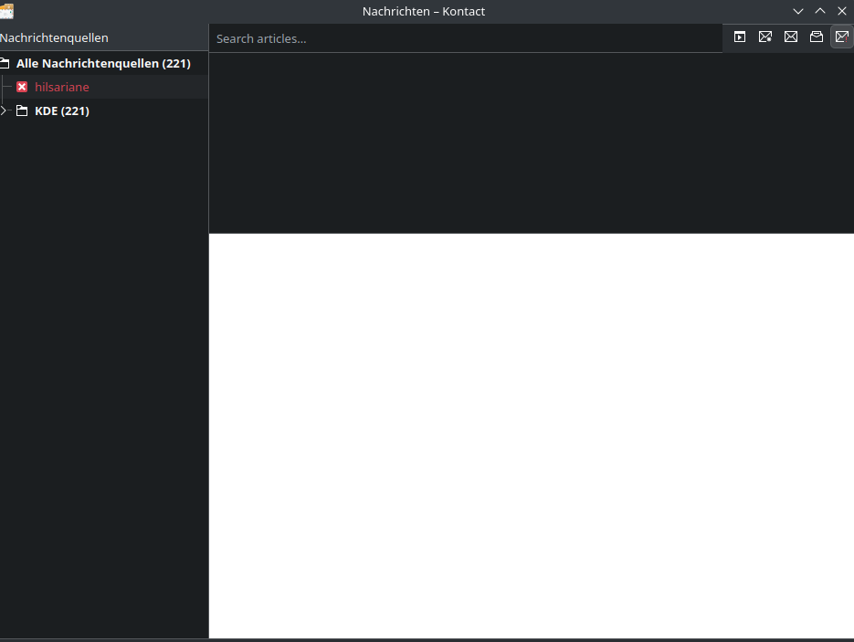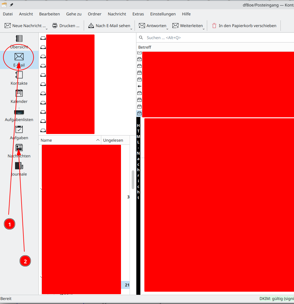 Zwei mögliche Wege (ich bevorzuge den ersten): 1) Ich starte Kontact und wähle dann aus den Elementen links "E-Mail" aus (siehe Screenshot, gestartetes Kontact mit aktivem E-Mail (== Kmail), das ist die Position (1). Was Du in deinem Bildschirmfoto zeigst ist der gestartete Akregator, Position (2))...